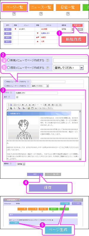 この「ページ生成」を行うことで、インターネット上に公開されます。