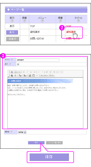編集方法は、ページ編集<編集エリア>を参照してください。