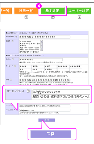 この「ページ生成」を行うことで、インターネット上に、お問い合わせ・資料請求が公開されます。メールアドレスの登録も反映されます。