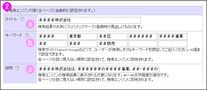 この「ページ生成」を行うことで、インターネット上に反映されます。 キーワード・検索説明文は、直接目に見えない場所(ページソース内)に設定されます。
